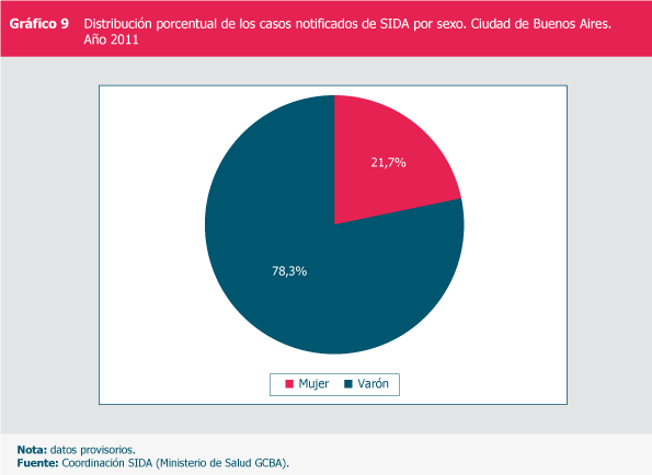 Distribución porcentual de los casos notificados de SIDA por sexo. Ciudad de Buenos Aires. Año 2011