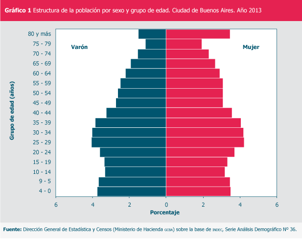 Estructura de la población por sexo y grupo de edad. Ciudad de Buenos Aires. Año 2013