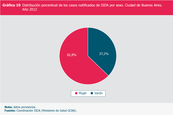 Distribución porcentual de los casos notificados de SIDA por sexo. Ciudad de Buenos Aires. Año 2012
