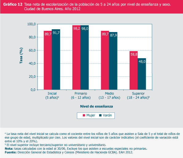 Matrícula por sexo y nivel de enseñanza. Ciudad de Buenos Aires. Año 2012