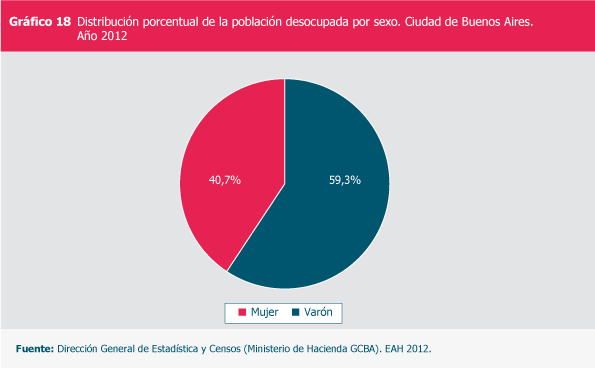 Distribución porcentual de la población desocupada por sexo. Ciudad de Buenos Aires. Año 2012