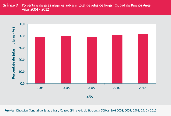 Porcentaje de jefas mujeres sobre el total de jefes de hogar. Ciudad de Buenos Aires. Años 2004-2012